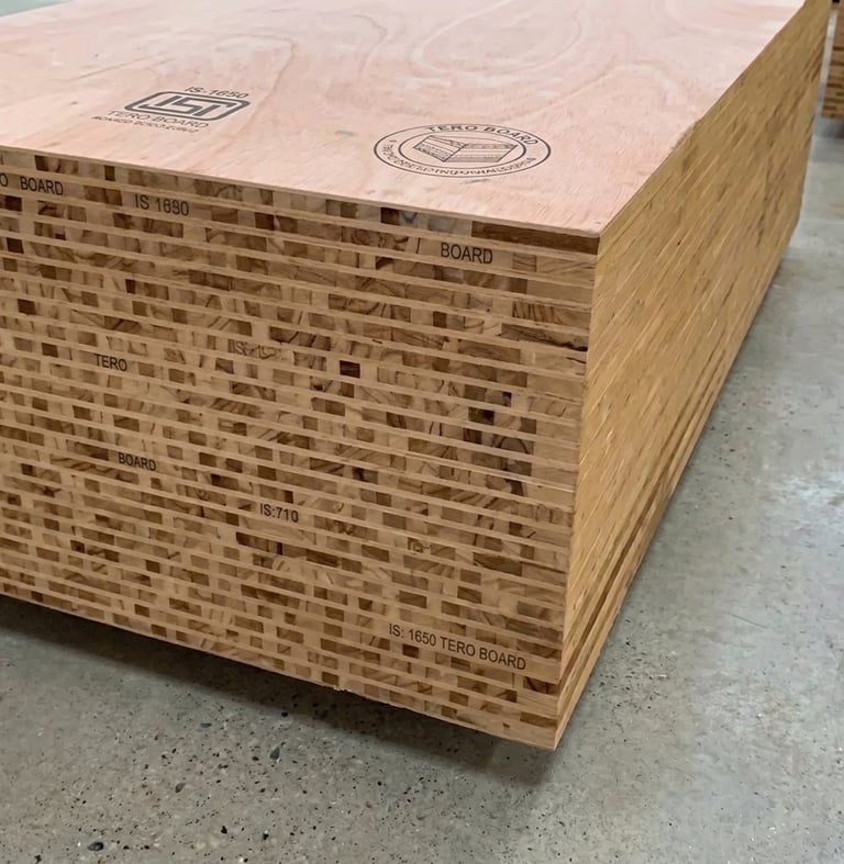 Manufactured as per IS 4990 standards, our shuttering plywood is engineered for construction use, offering high load-bearing capacity and multiple reusability cycles